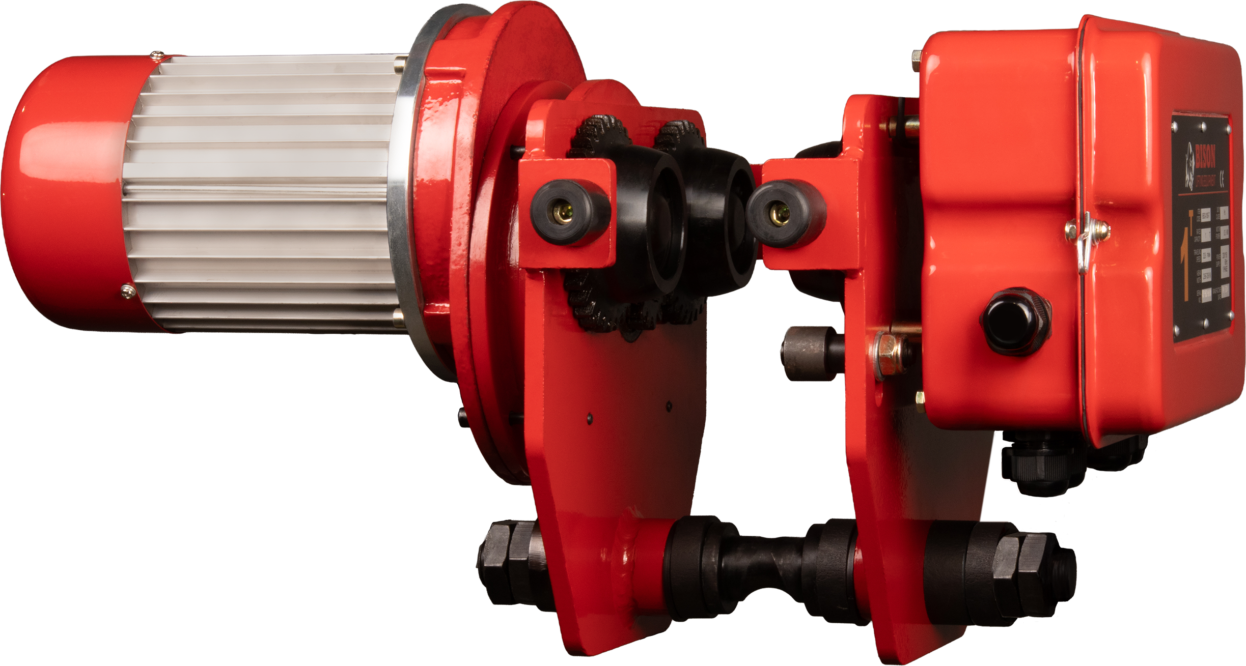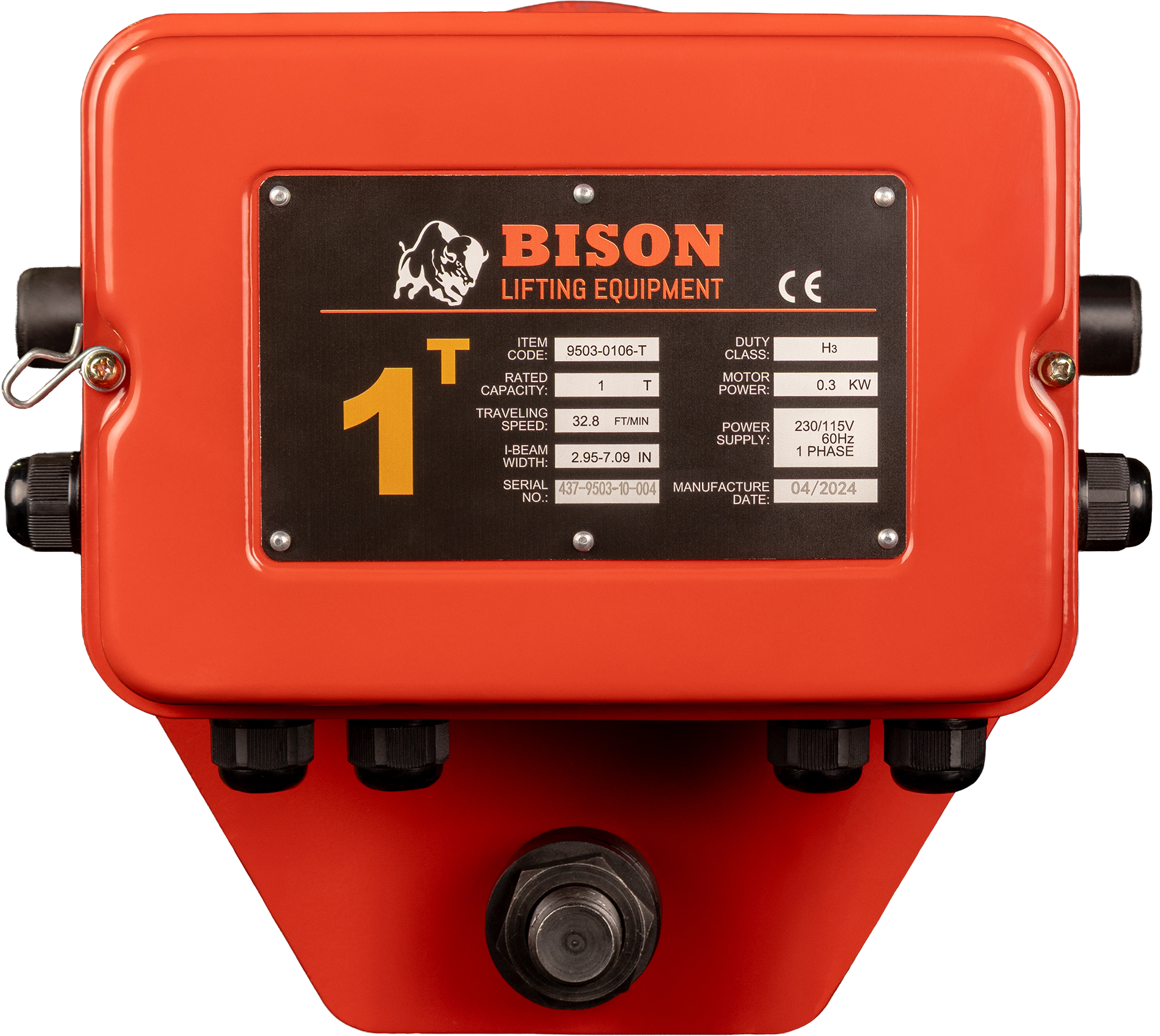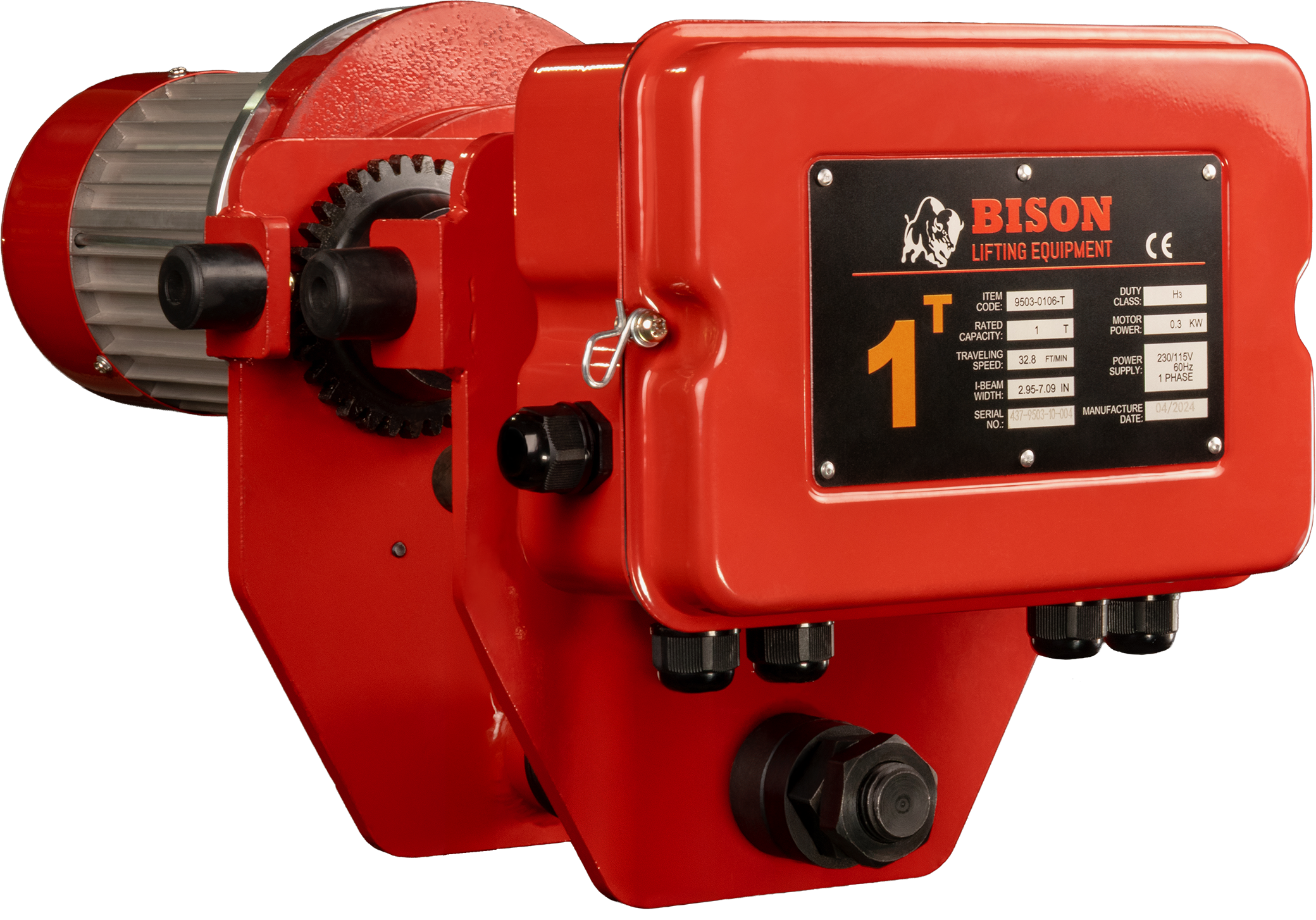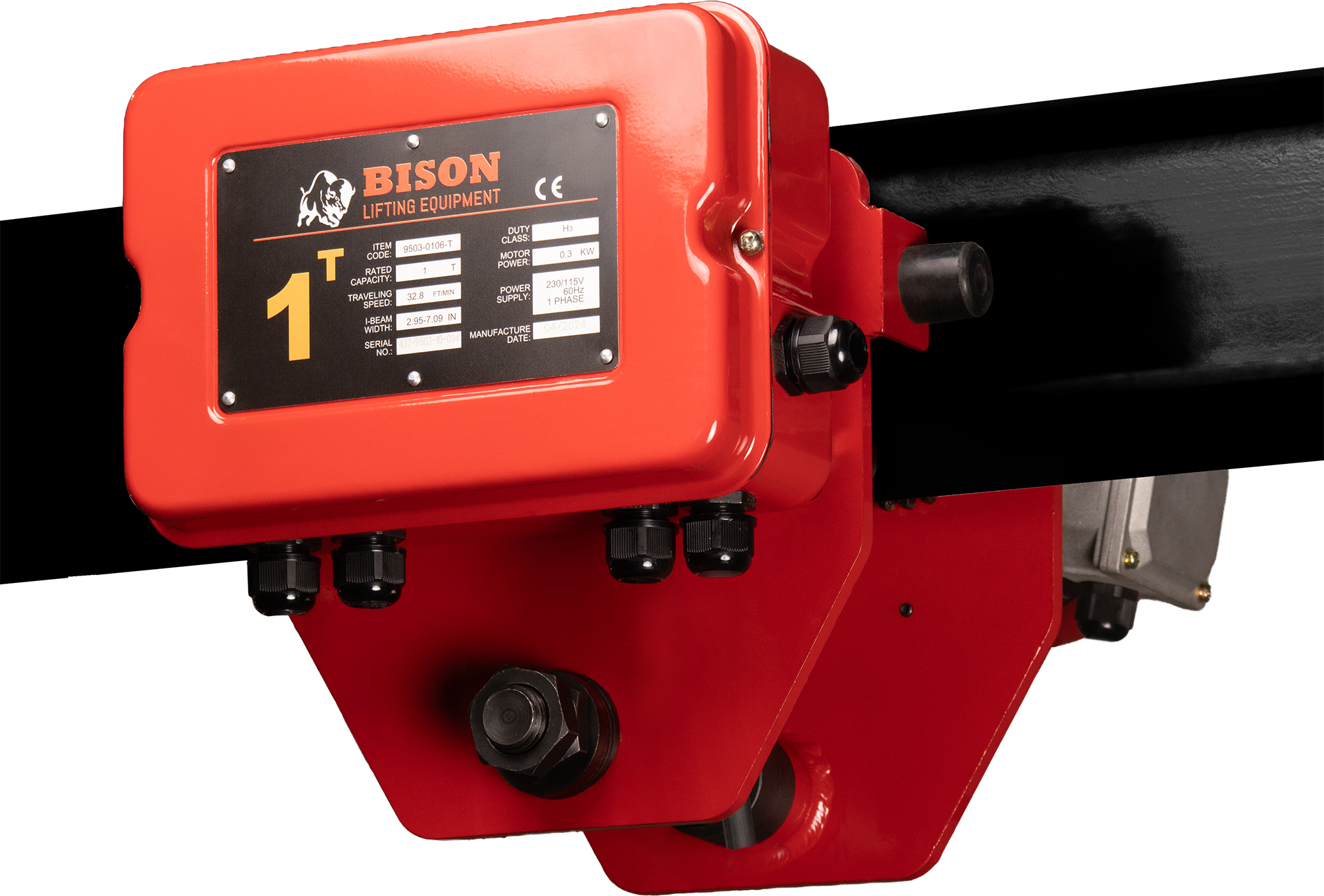 The Bison sinlge phase motorized trolleys are universal to all hoists. The trolley can be controlled indepently through its own pendant crontroller. Only hoists with 24V control can be wired into the motorized trolley to be operated all through one pendant.