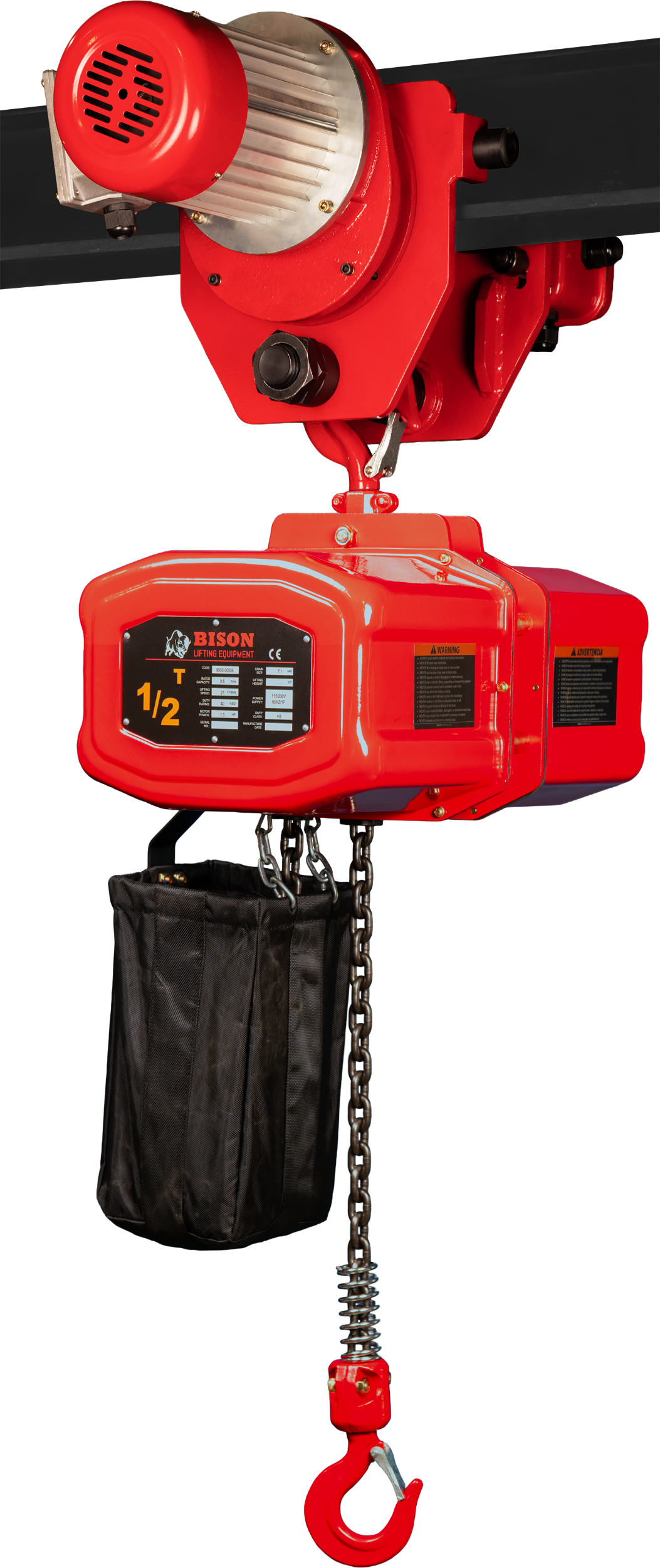 Canvas or plastic container included with all standard hoists.