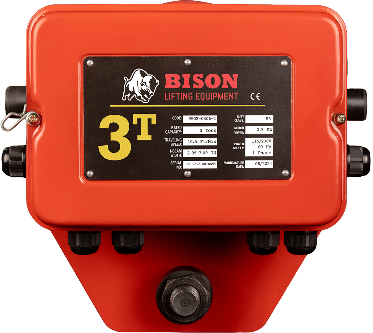 The Bison sinlge phase motorized trolleys are universal to all hoists. The trolley can be controlled indepently through its own pendant crontroller. Only hoists with 24V control can be wired into the motorized trolley to be operated all through one pendant.