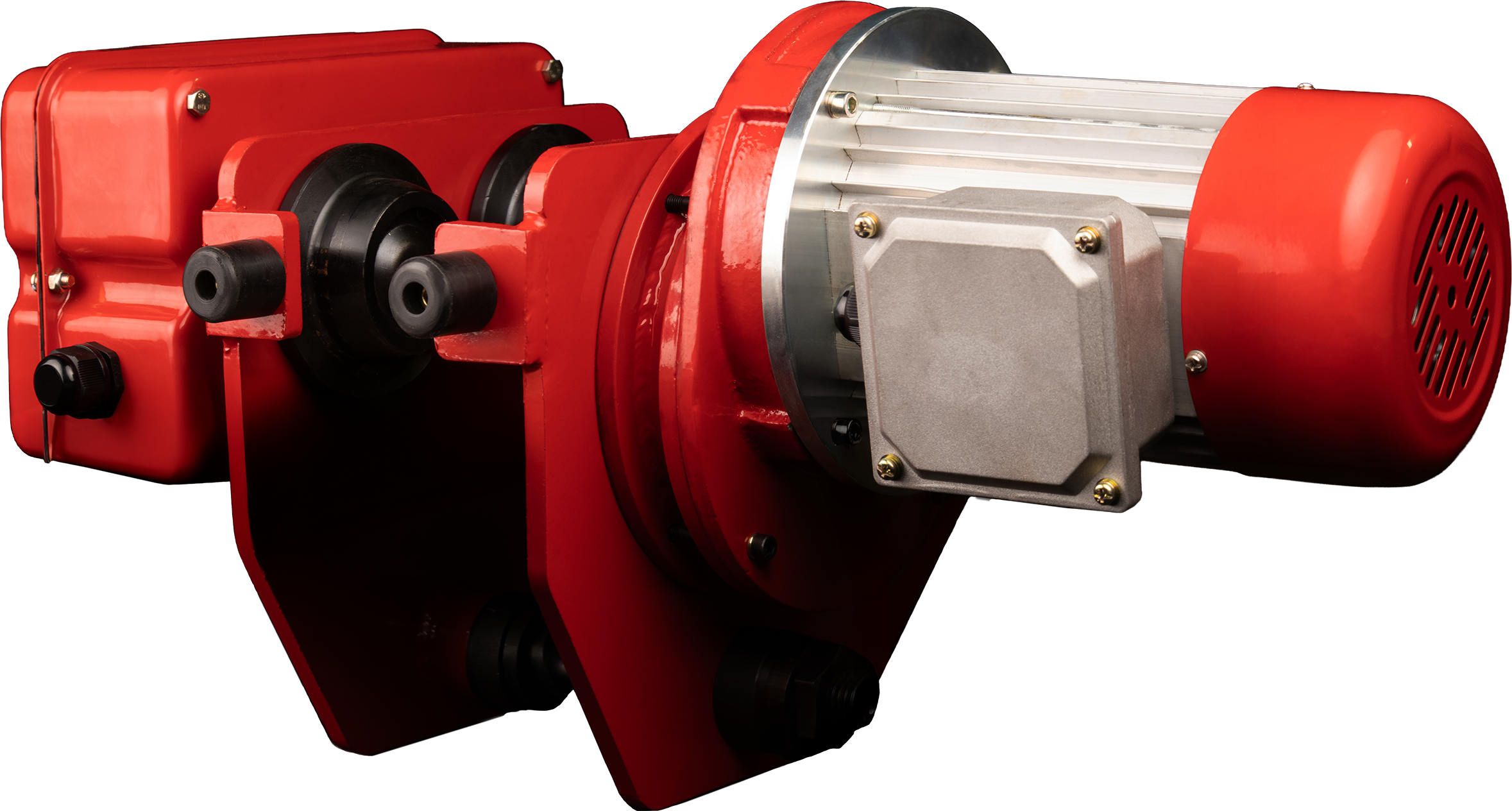 An electric chain hoist hooks directly onto the trolley. The hoist is then connected directly into the trolley. Operates from the same pendant controller.