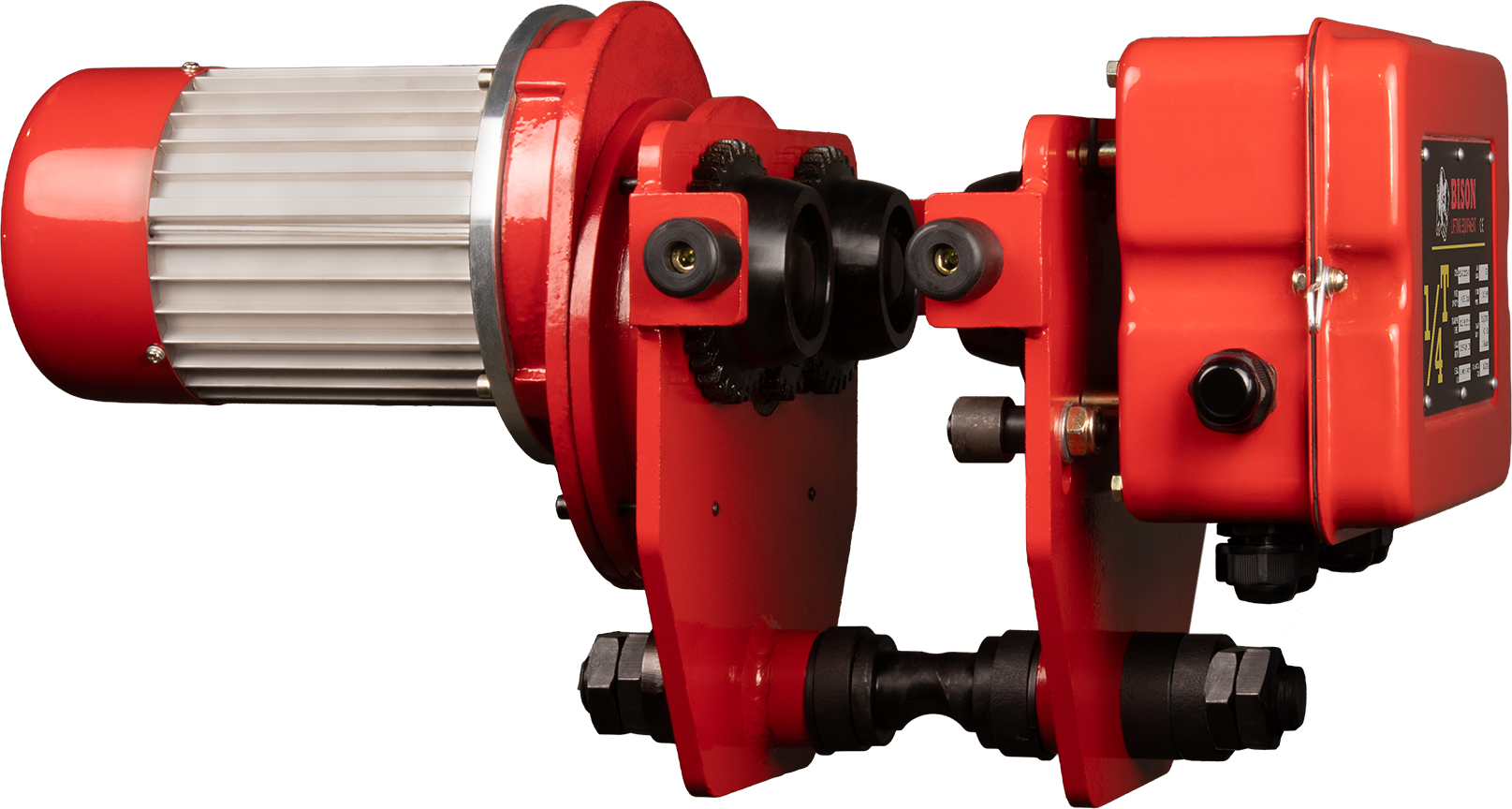115V /230V Single Phase Motorized Trolley.An electric chain hoist hooks directly onto the trolley. The hoist is then connected directly into the trolley. Operates from the same pendant controller.